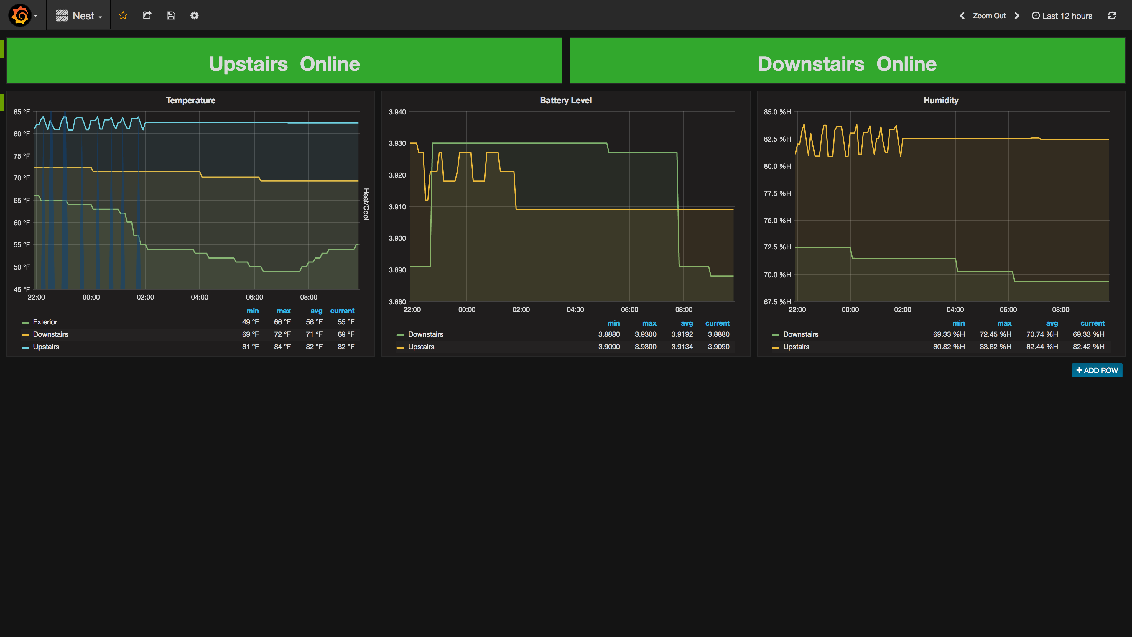 And if anyone at Nest is reading this, it would be really cool if you had an open API for your users to build their own solutions. I know about the “official API”, but it is clearly business oriented and certainly not maker-friendly given all the hoops you have to jump through just to get access to it. I just want to draw neat graphs and know when something is broken, not change the world. Please let us have access to our data.
